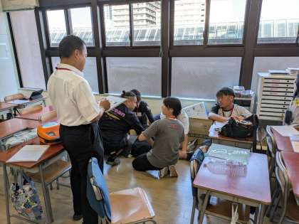 放課後に教職員が集まって食物アレルギー研修会を行いました。1学期にも行いましたが、エビペンの扱い方を復習し、給食中の誤食が起こった想定でシミュレーションしました。教職員一人一人が様々な役割を理解して、組織的に動けるように訓練しました。振り返りでは、児童の生命を安全に守るために、さまざまな意見が交わされていました。
