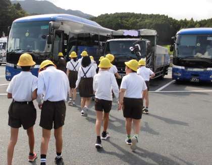 それぞれのバスの中は楽しい会話でいっぱいです。
