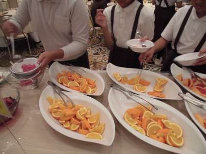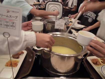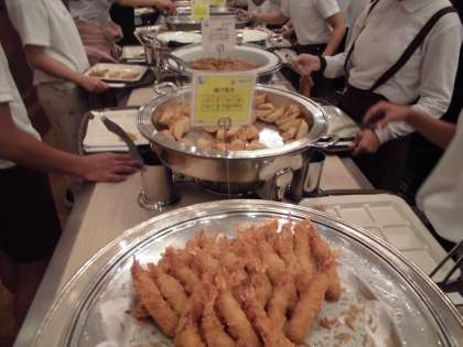 夕食はビュッフェスタイルです。さまざまな料理をおいしくいただきました。