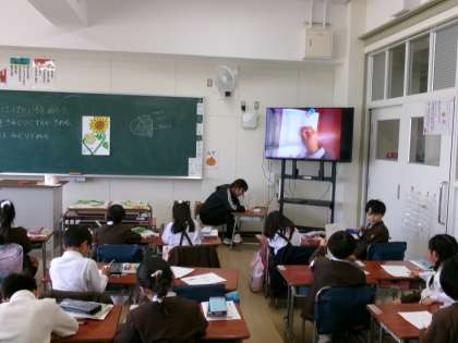 先生の話をよく聞いた後、夢中で自分の思いを表現しています。