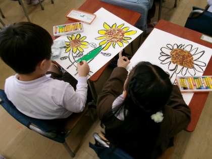 1年生は堀江小学校で初めての作品展に向けた制作です。