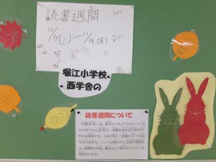 堀江小学校西学舎の読書強調週間は今週から、来週11月14日までです。