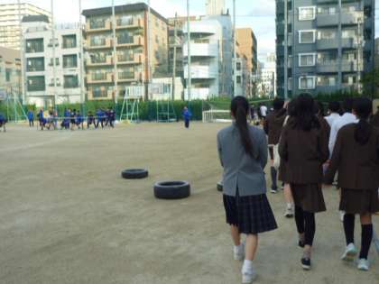 体育館と運動場で活動している運動部を見て、この日の見学を終えました。