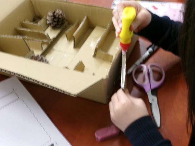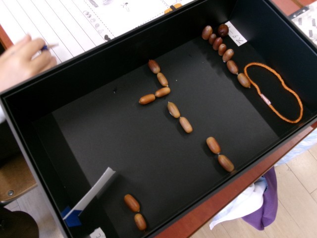 集めたどんぐりやまつぼっくりを使っておもちゃを作りました。
