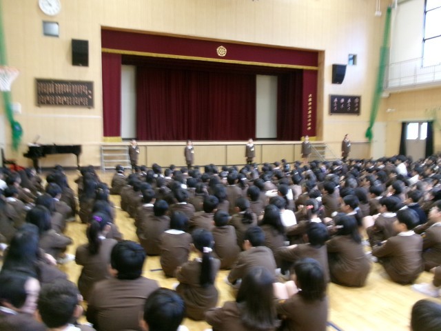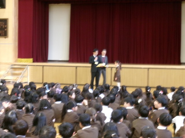 准校長先生からのお話と冬休みの生活のお話の後、みんなで校歌を歌いました。
