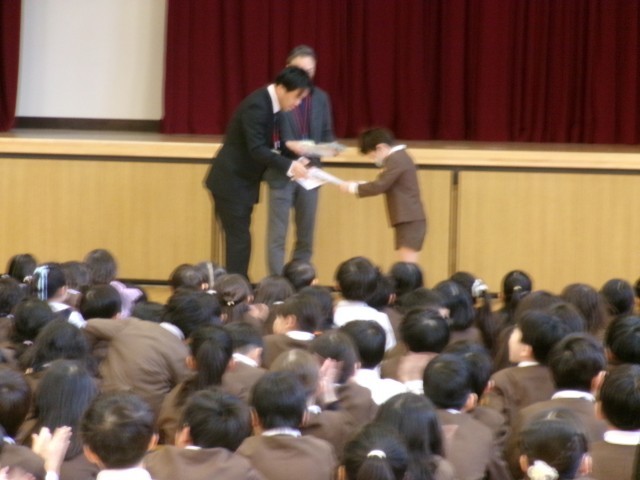 終業式では2年生と4年生の5人が2学期のがんばりを発表しました。