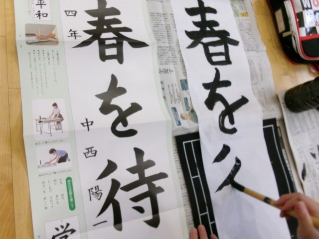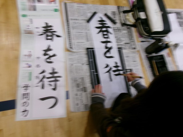 慣れない書初用紙に悪戦苦闘しながらも、