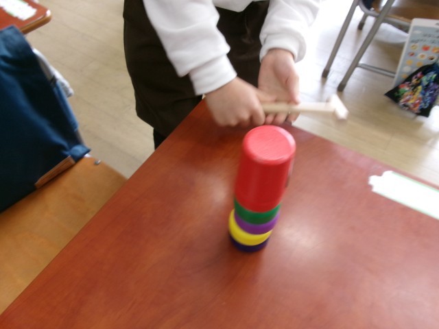 慣れない遊びに、なかなかうまくいかない様子でしたが、「できたよ」と見せてくれる子もいました。