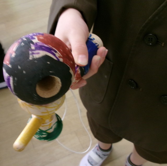 だるま落とし、お手玉、こま回し、けん玉、など、次々にチャレンジしていました。
