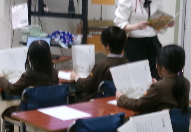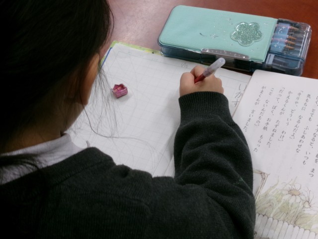「手紙」というお話を、先生の範読に続いて、しっかりと読んでいました。