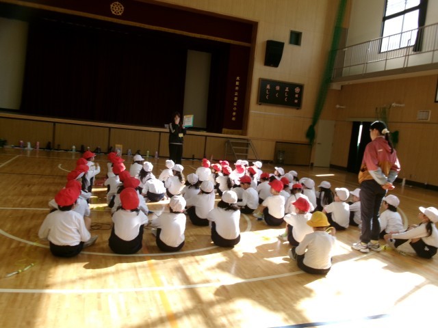 先生の言うことをよく聞いて、左右前後に広がり、ぴょんぴょんぴょん。