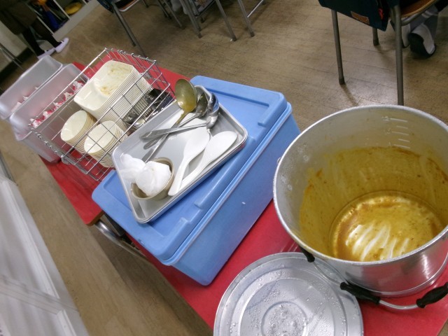 給食時間終了前にいろんな教室をのぞいてみると、さすが、カレーライス。