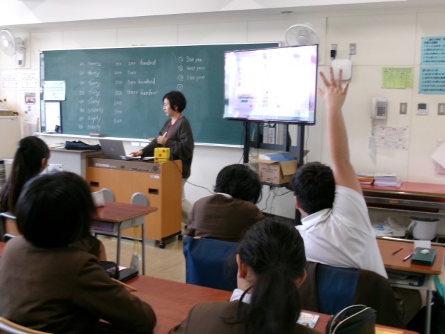 分かったら、勢いよく手を挙げて発表します。