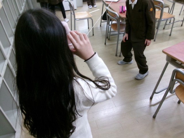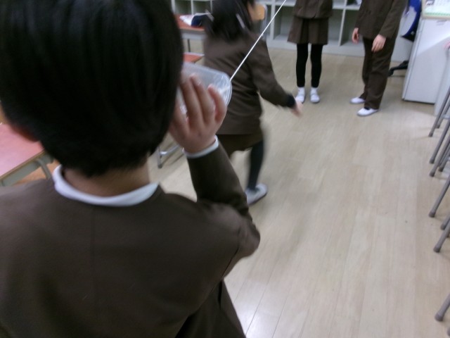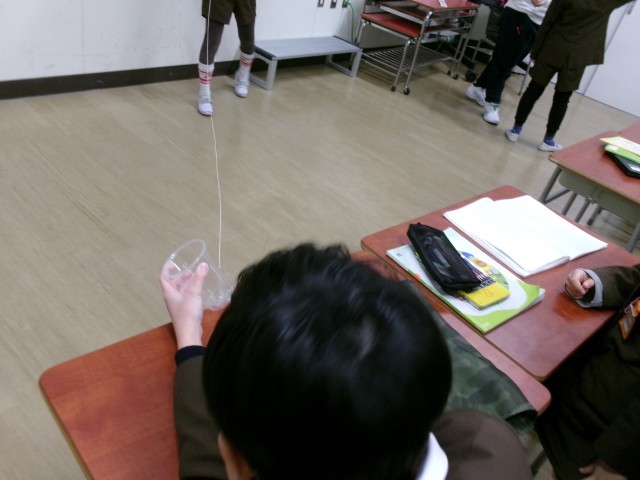 糸電話を使って学習しています。