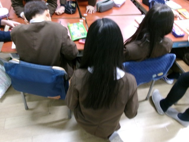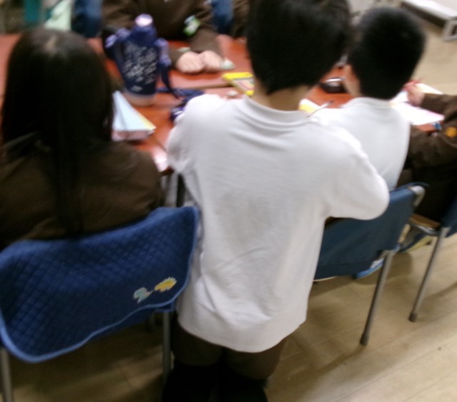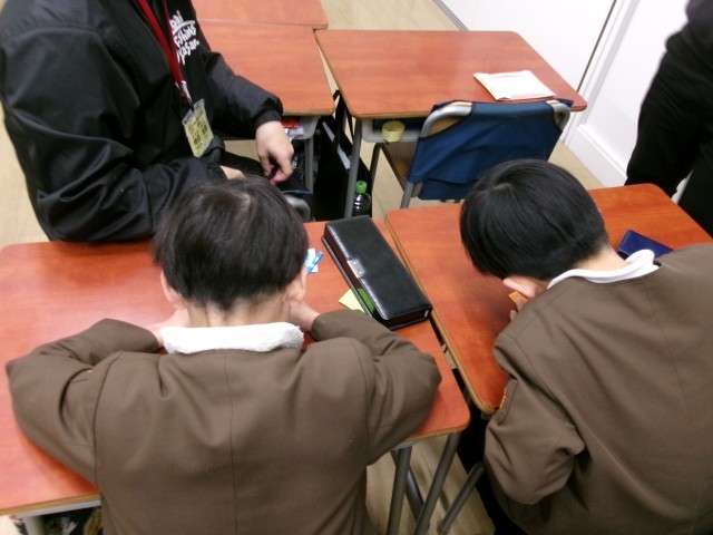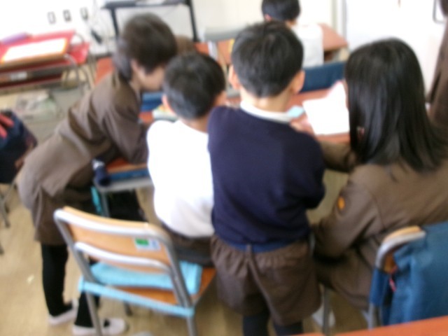 班のメンバーが、熱心にメッセージを書くのを見守ったり、