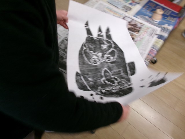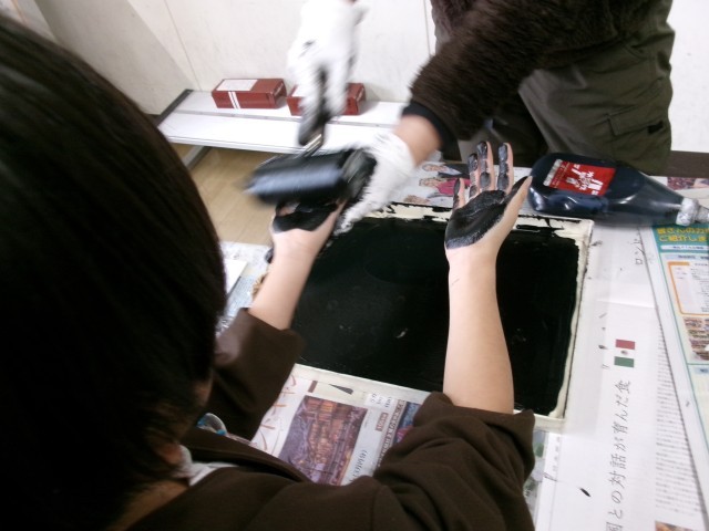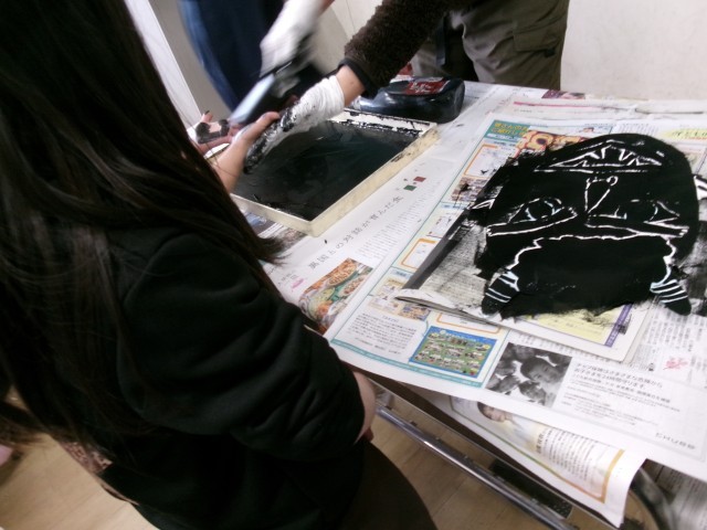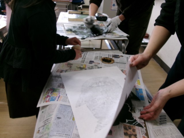 版画を仕上げています。