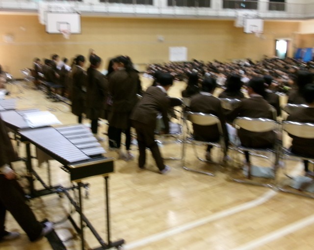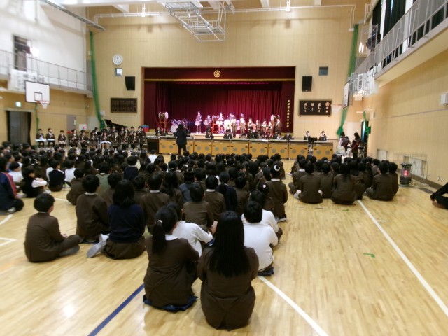 5年生の合奏をほかの学年が鑑賞しました。