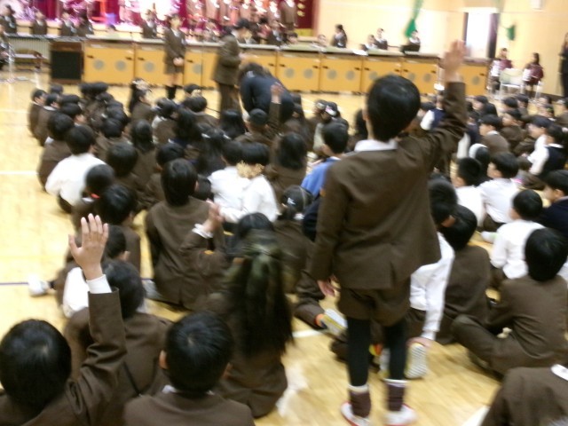 演奏を聞いた子どもは、太鼓の迫力や、演奏の美しさについて、感想を述べていました。