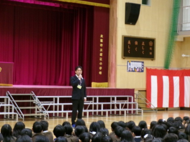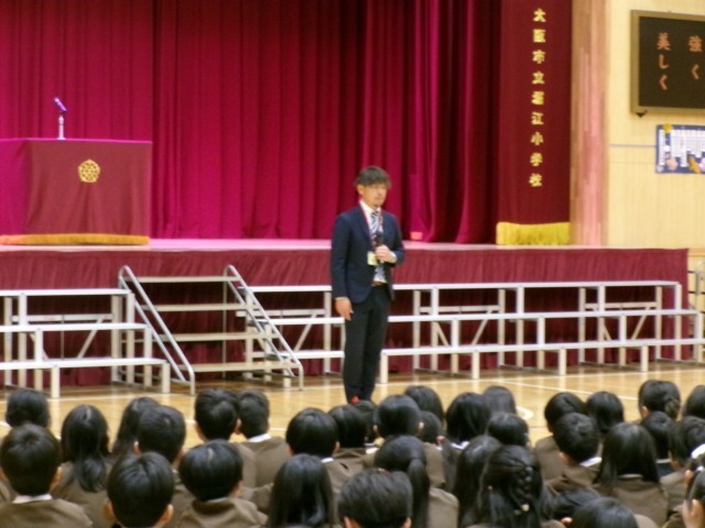 准校長先生と生活指導の先生からのお話の後、みんなで校歌を歌いました。