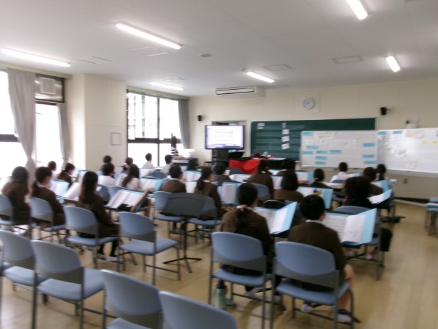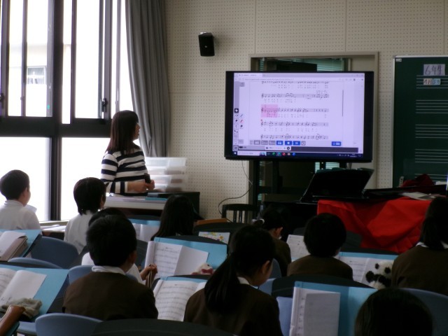 音楽室で5年生が歌っていました。