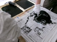 版画を仕上げています。みんなで協力しています。見えないところでみんなのためにせっ...