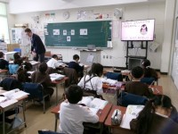 特別に、いつもとちがう先生が道徳の授業をしています。いつも以上に頑張っていました...