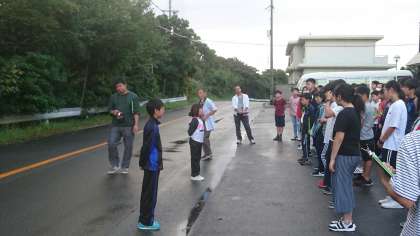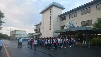 朝の集いを行いました。元気にあいさつをして、1日のスタートをきりました。学年集合写真を撮影しました。これから、朝食です。