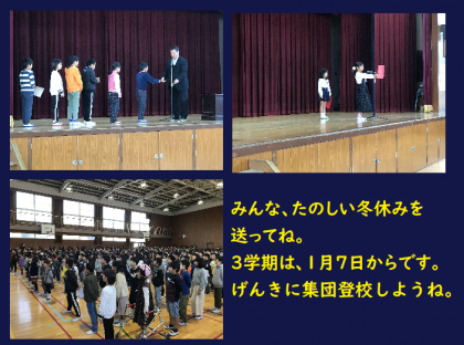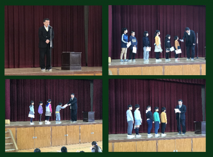 読書感想画の表彰、各クラスの安心ルールの取り組みの表彰もしました。