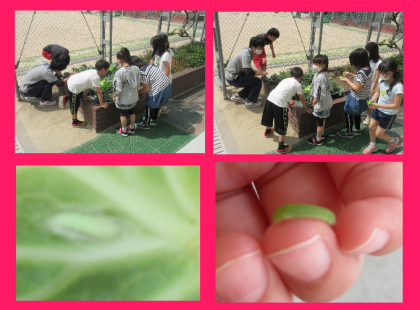 3年生は、キャベツの葉の裏にいるアオムシさがしに