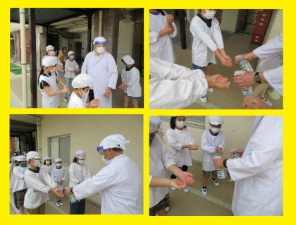 毎日、給食の時間になると、消毒マンが現れて、みんなの手を