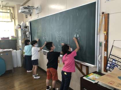 水曜日の休み時間に、黒板を使ってある遊びをしました。