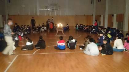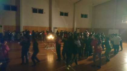 さて、キャンドルファイヤーは続き、いよいよ各学級が練習してきたスタンツです。