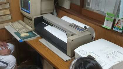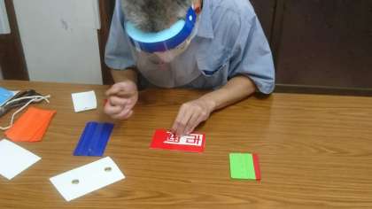 こちらは、早川テントです。テントにどうやって文字を書くのか見せていただきました。