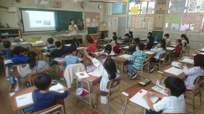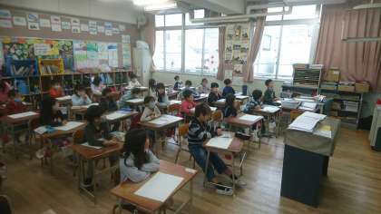 残念!雨の土曜日。各学級の活動を紹介します。1の2