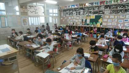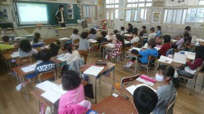 さて、2年2組です。こちらも、国語「ビーバーの大工事」の学習をしています。