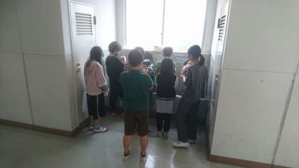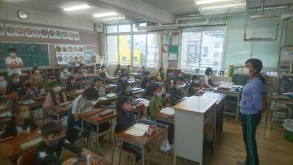 残念!雨の土曜日。各学級の活動を紹介します。4の1