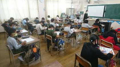 英語のテストです。真剣に問題を解いています。がんばれー!