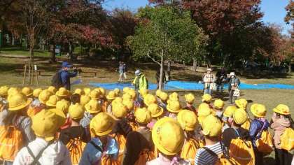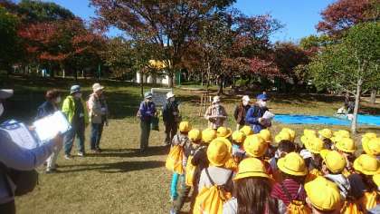 今日は、シニア自然大学校の皆さんのご協力のもと、八幡屋公園であきを見つけます。