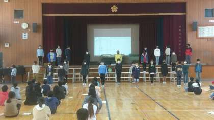 5年生も練習しました。3組・1組・2組の順に、和の文化について調べたことを発表します。