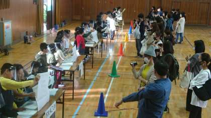 3回めの発表は、マスクを外しフェイスシールドだけにしました。