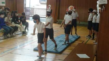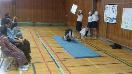 体育を発表するグループは、マット運動とリレーを紹介しました。