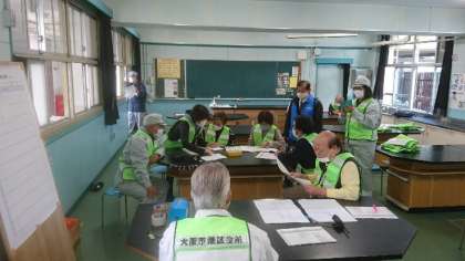 本日、市岡の町では、避難所開設訓練を実施しています。