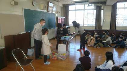 新型コロナウイルス感染症に関して大阪府では赤信号( レッドステージ)になりました。感染防止のため、子どもたちは、マスク、フェイスシールドを着用します。また、アクリル板を設置します。金銭の受け渡しも工夫します。また、頻繁に手指の消毒を行います。