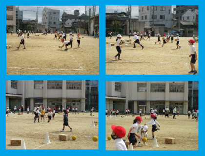 下の写真は、3密を避けマスクを着用して行っている、今日の1年生の体育です。