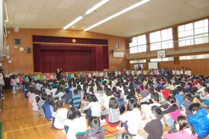 4月13日(月)菜種梅雨の影響か雨の日が多い4月ですが、講堂に1年生の子どもたちが6年生のお兄さん・お姉さんに手をつないでもらって入場し、対面式を行いました。校長先生からは、100人の1年生が、焼きそばやカレーライスの給食を楽しんで食べていることや、高学年の人たちは小さい子どもの目線に立って廊下や階段を安全に歩行しましょうと、お話がありました。児童代表の6年生が、楽しい行事があるとの紹介をし、1年生がみんなで よろしくお願いしますと挨拶をしました。540名の市岡フレンズ これからも笑顔で過ごして欲しいものです。