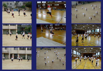 体育の授業では、走高跳び、しっぽとり鬼、6年生は運動会の学習が