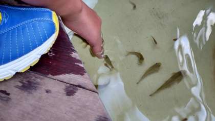 修学旅行、ドクターフィッシュに癒やされる