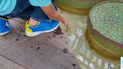 手をつけると魚が寄ってきます。嬉しそうな、恥ずかしそうな笑顔に、みんななっています。