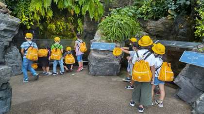 今日は、2年生が社会見学に来ています。まずは、海遊館の見学をしました。