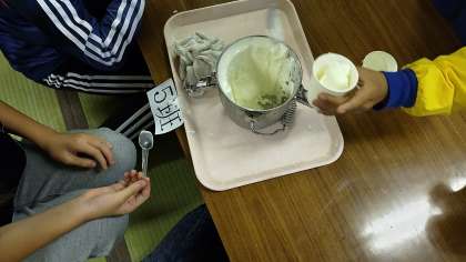 さあ、出来ばえはどうでしょうか?十分に固まらなかった班もありましたか、みんなおいしくいただきました。